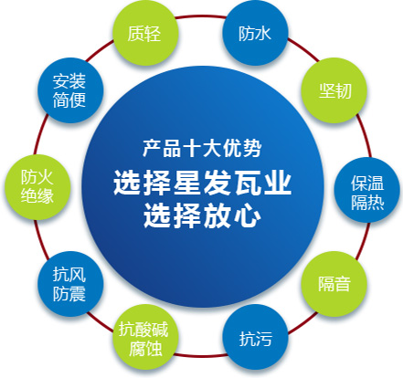公司主要產品有《星發(fā)牌》合成樹脂瓦、APVC防腐耐候復合瓦、APVC發(fā)泡隔熱瓦、PVC半透明瓦、PVC防腐隔熱瓦、PVC防腐瓦、PVC防腐平板、PVC條紋板和ASA/PVC超耐候復合瓦等產品。產品一經(jīng)推出,已被廣泛應用于國內各類平改坡項目和大型工業(yè)項目,遠銷歐洲、亞洲、美洲和非洲等國外市場,還獲選為廣州亞運會、深圳大運會、四川災后重建等工程項目的應用產品。公司在不斷創(chuàng)新和改革的基礎上,力求以更好的產品、優(yōu)良的服務,用心、專心服務好每一個客戶。